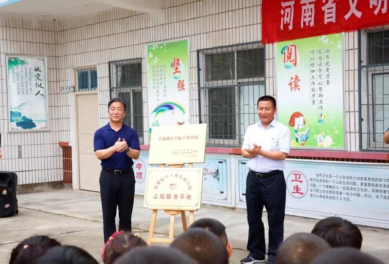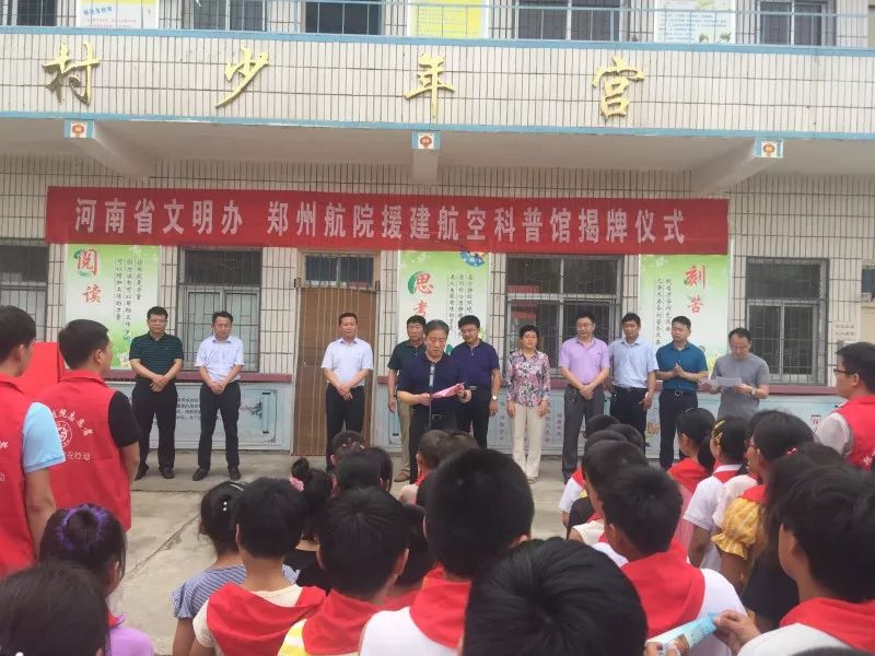 7月11日,河南省委宣傳部常務(wù)副部長(zhǎng)蘇長(zhǎng)青、副部長(zhǎng)張曼如、省文明辦專職副主任王飛等同志帶領(lǐng)部機(jī)關(guān)有關(guān)人員,與鄭州航空管理學(xué)院有關(guān)領(lǐng)導(dǎo)和志愿者師生一行,分別到省委宣傳部幫扶貧困村周口市西華縣半截樓村和漯河市舞陽(yáng)縣余莊村,為省文明辦、鄭州航院援建的航空科普館和鄭州航院志愿服務(wù)基地舉行揭牌儀式。